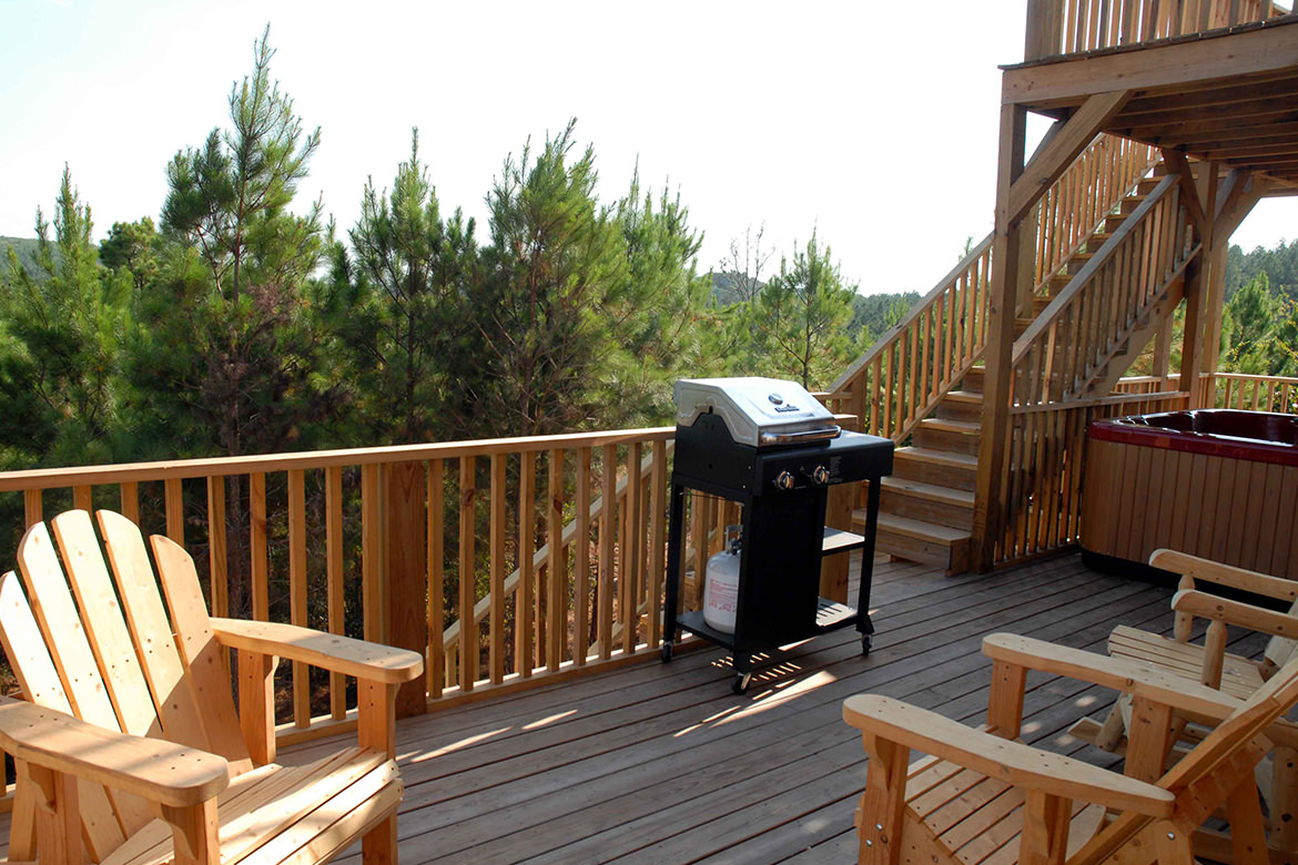 Being at the peak of one of the highest mountains in the area has many advantages. The Cubby Bear, broken bow cabins, has plenty of deck space including a second floor deck with plenty of views. Outside also features a six person hot tub, gas grill and fire pit. All tubs are drained, cleaned and refilled after each visit.