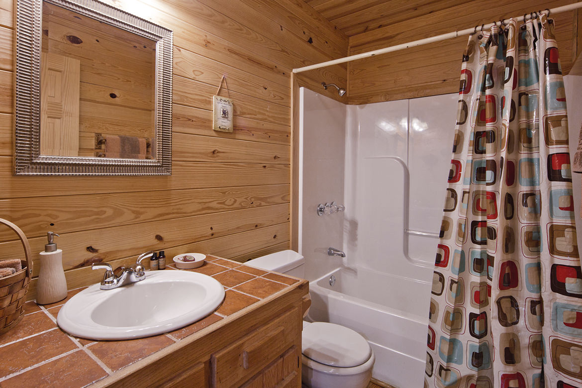 The deck also features a fire pit and hot tub. Wood is provided for the fire pit and all hot tubs are drained, cleaned and refilled after each visit to our broken bow cabins.